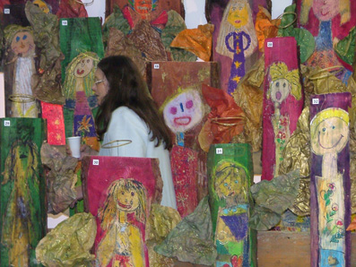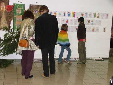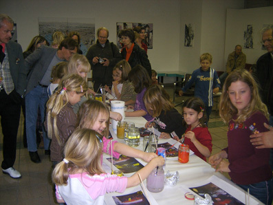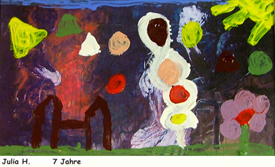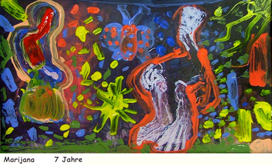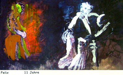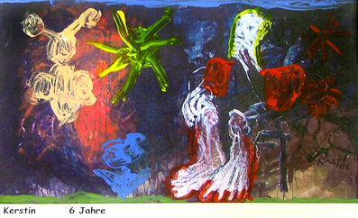 | Anlässlich der Engelpräsentation übermalten die Malschulkinder und die Kinder der Volksschule und des Kindergartens im Dorf Kloster gemeinsam mit dem Maler WILLY RAST eine Kopie dieses Bildes... |