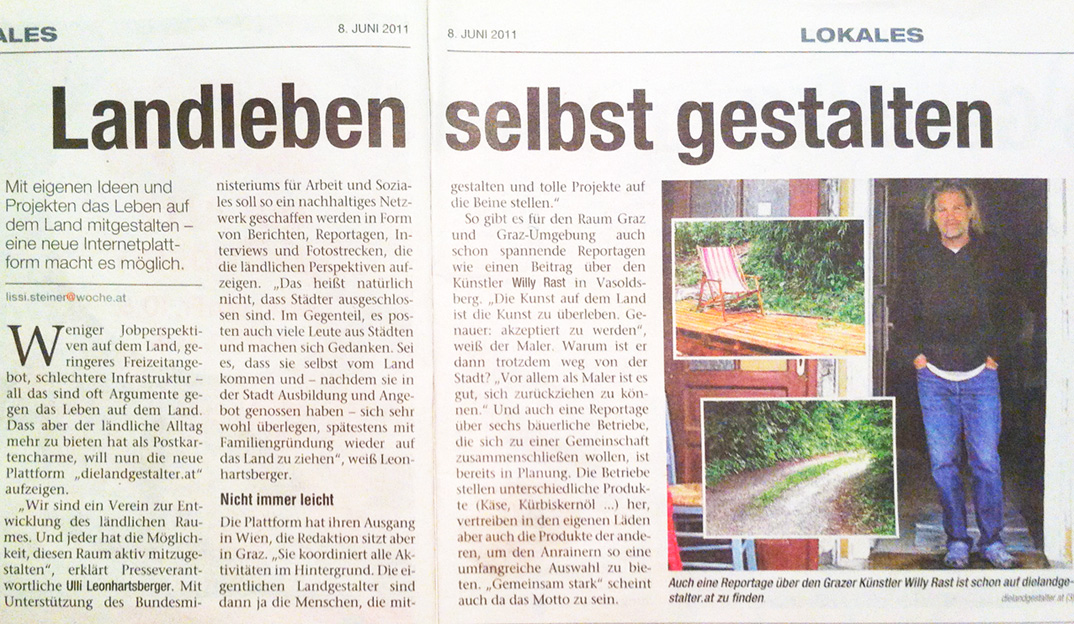 Das Jubiläumsjahr, 40 Jahre Hofgalerie im Raiffeisenhof, dem Bildungshaus der Landwirtschaftskammer, startet mit drei malerischen Sichtweisen auf die „Welt des Atmens“ und deren medialer Kollektivierung. Im Mittelpunkt steht die Frage an das Medium der Malerei: „Inwieweit gelingt es dem Künstler, durch all die Tastaturen, künstliche Herzklappen und Hüftgelenke, Psychopharmaka und Trends, noch durchzudringen zum Menschen?“